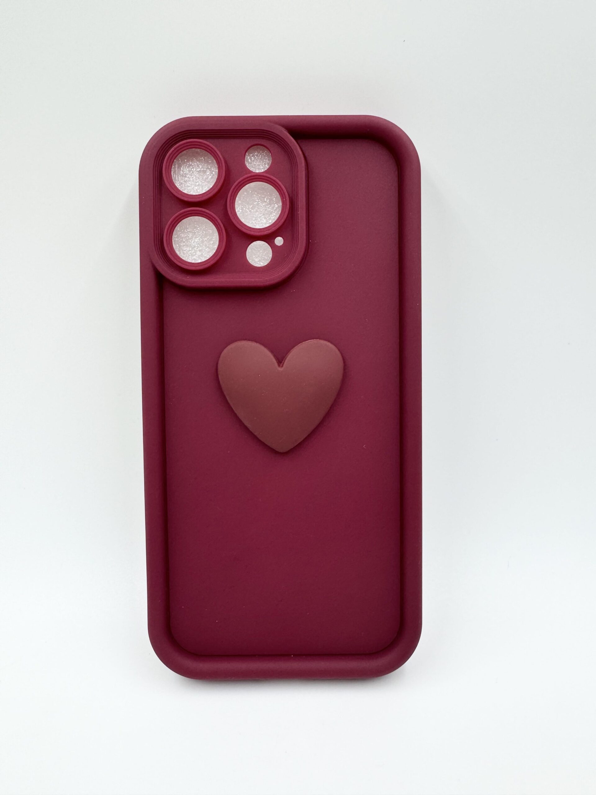 Подарите своему iPhone 15 Pro Max элегантность и защиту с этим стильным чехлом в насыщенном бордовом цвете. Аксессуар украшен объемным сердцем в тон, что придает ему утонченный и романтичный вид. Чехол выполнен из прочного и мягкого на ощупь силикона, который надежно защищает устройство от повреждений и загрязнений.